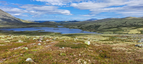 Heute bin ich nur ein kurzes Stück gewandert. Ich traf schon gegen 14:00 Uhr am Breisjøseter ein beschloss den Nachmittag "frei" zu nehmen. Die Sonne schien den ganzen Tag bevor am Nachmittag Wolken aufzogen. Mir kam der heutige Weg recht steinig vor. In den nächsten Wochen lernte ich schmerzhaft das dies garnichts war. Nachmittags legte ich mich eine Weile hin bevor ich eine Dusche nahm. Abends gab es dann ein schönes warmes Essen.