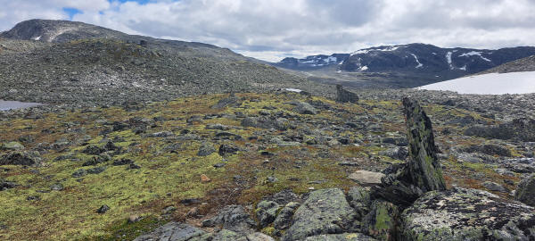 Dies war ein relativ sehr kurzer Wandertag. Es begann auf einer Schotterstraße bevor der Weg richtig begann. Bis zum See Starsjøen war der Weg gut und nicht zu steinig. Hier in Seenähe gibt es ein eigenartiges Stück Weg. Es gibt einen Tunnel mit dem Wasser vom See Mjaavatnet zum See Strasjøen geleitet wird. Der Weg führt bergauf und um die Tunnelöffnung, welche noch im Schnee versteckt war, herum. Schilder warnen davor den markierten Weg zu verlassen da dieses scheinbar sehr gefährlich ist.